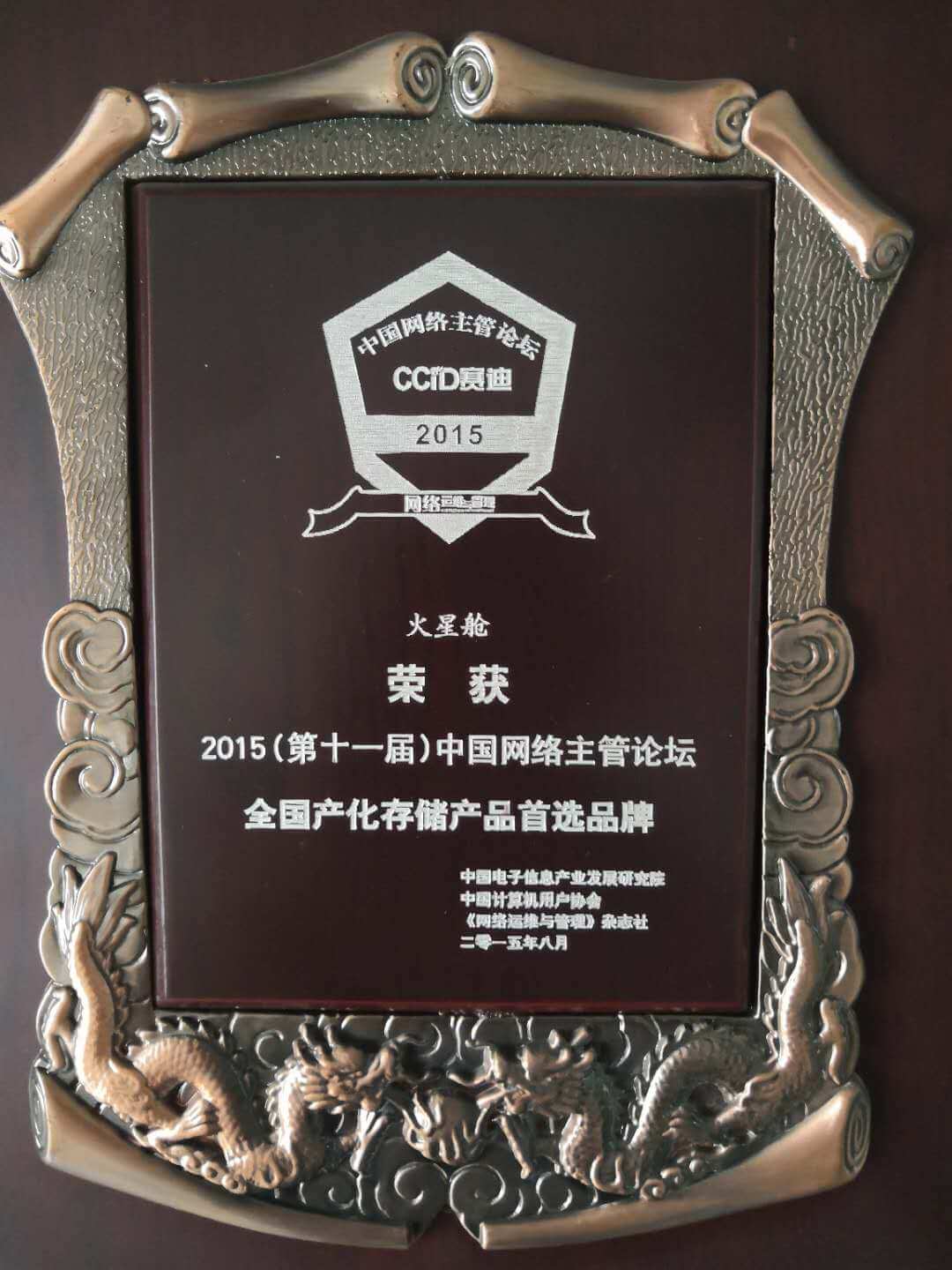 2015年中國網絡主管論壇全國產化存儲產品首選品牌