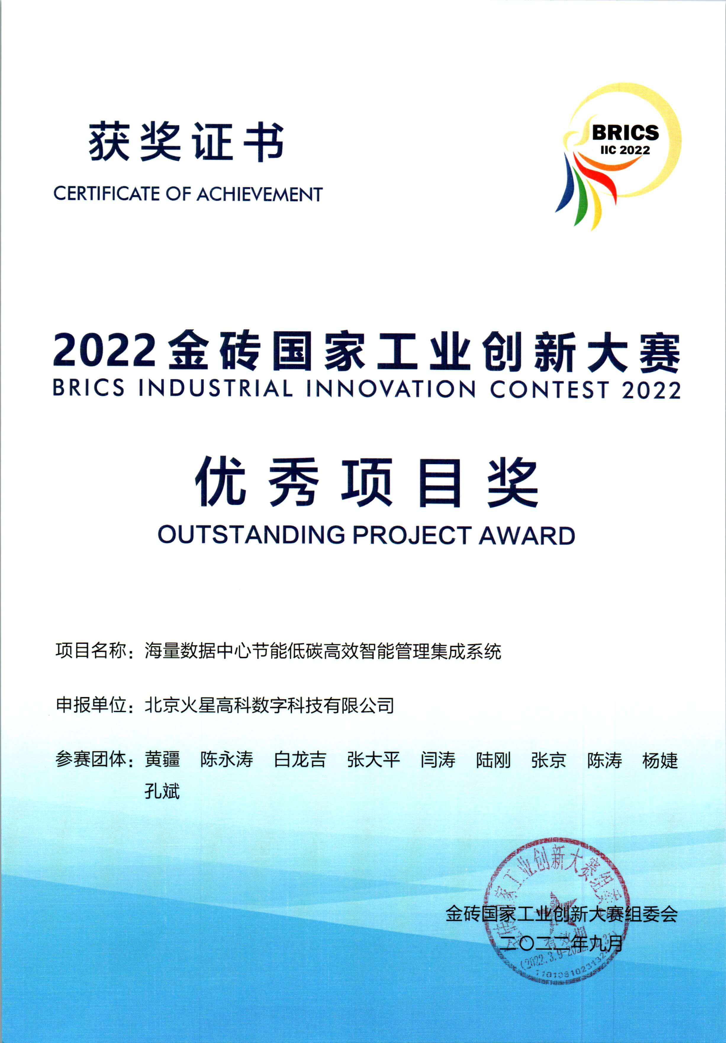 2022金磚國家工業創新大賽--優秀項目獎