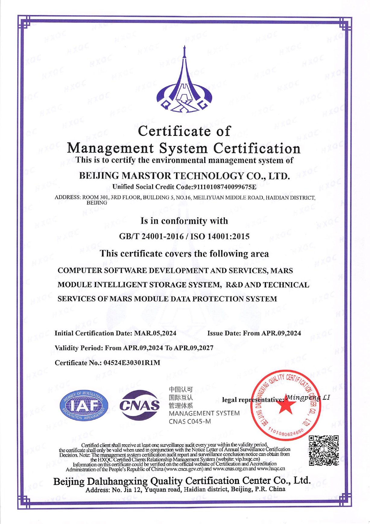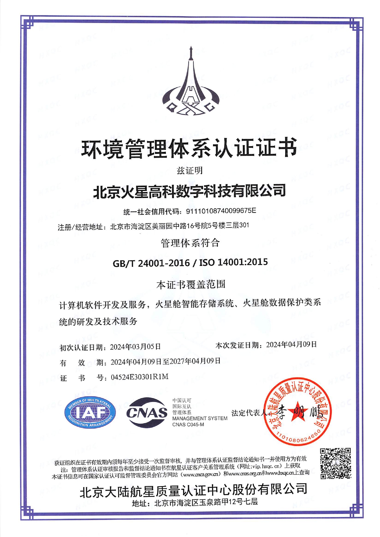 2024環境管理體系認證證書(中英)-14001